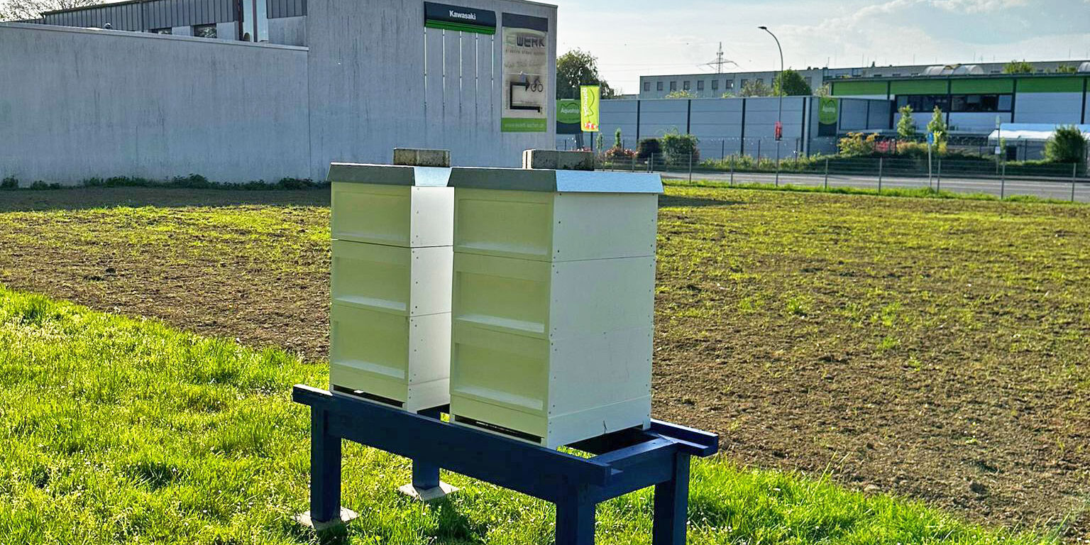 Wir sind begeistert, dass die Umsetzung dieses Projekts Anfang April durch die CBW (Caritas Betriebs- und Werkstätten GmbH) geplant und durchgeführt wurde. Um die Bienenblumenwiese zu vervollständigen, haben wir uns zusätzlich dazu entschlossen, zwei Bienenstöcke zu adoptieren. Auch für dieses Vorhaben steht uns die CBW, gemeinsam mit dem Imker Guido Dondorf, mit Rat und Tat zur Seite und wird uns in den kommenden vier Jahren begleiten.